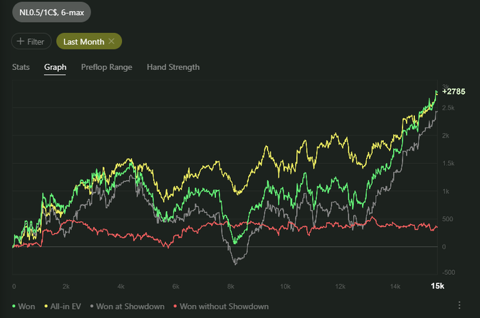 Если бы я зарабатывал покером, этот месяц был бы катастрофой, ведь я вышел в ноль только за счет рейкбека, но в режиме хобби это самый оптимальный результат. Но конечно хотелось бы его улучшить.