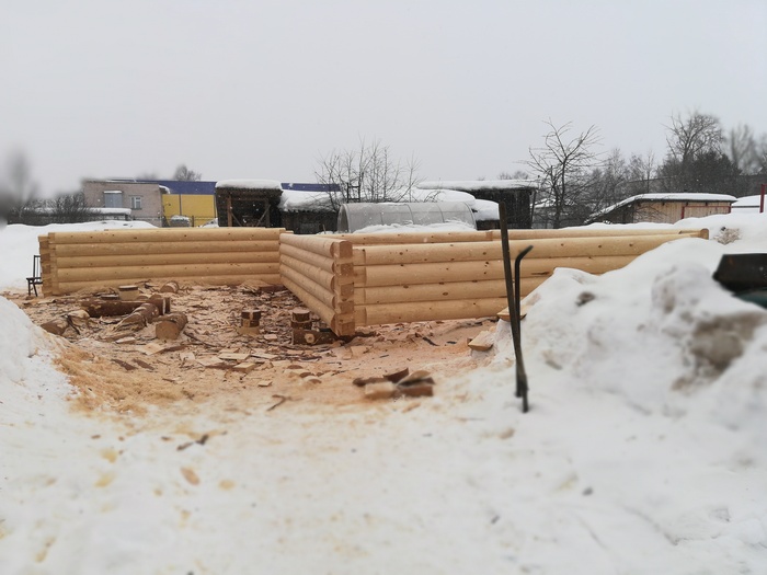 А ещё мне родители сруб бани подогнали, мужики закончили вчера собирать, теперь будет отстаиваться. Кстати, фото скину.