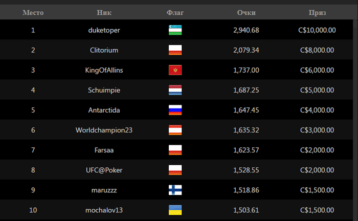 И можно ли как-то узнать сколько очков у тебя в таблице лидеров GGPoker World Festival, ради интереса? Хотя бы где написали толком, как они там начисляются, за каждый ли вход, или по последнему входу, соответственно, лучшее место в итоге, с примером распределения итоговым по турниру.
