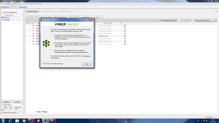 Включаю хм при запущенных столах,после того как загрузился хад выдает ошибку и хад прекращает работу на всех румах, но пт все равно трекает руки