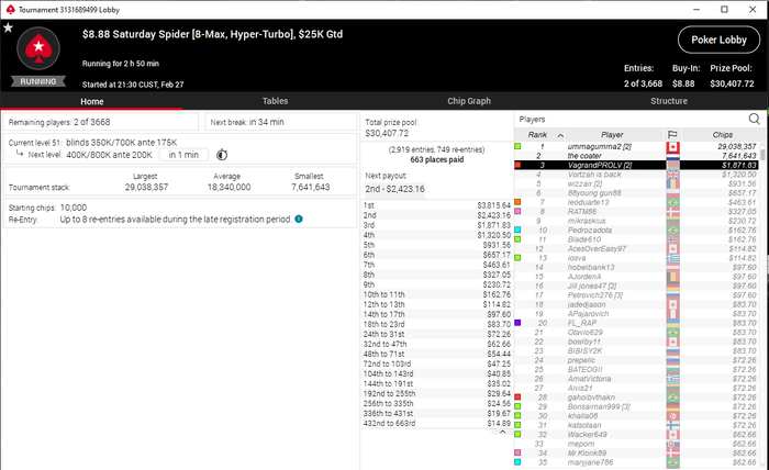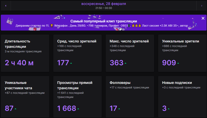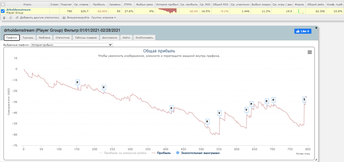 Ну че, сегодня +2.4К примерно нажил) Но осадочек остался. В битзепрос по 210 в ТОП60 проеб за 55бб имея натс стрит на флопе, по итогу дали 1К с небольшим. Ну и в этом гиперке после удвоения в 3 МАХ готовился к ХА минимум, а там бы было видно. Но резалт хороший, работаем) Отчет по марафону сделаю завтра. Ну и в 12.30 продолжим, стрим на канале https://www.twitch.tv/drholdem