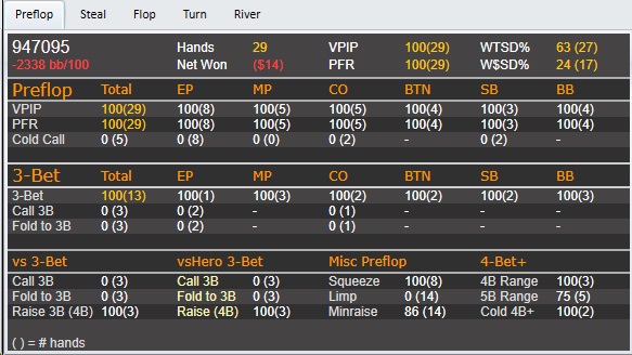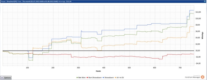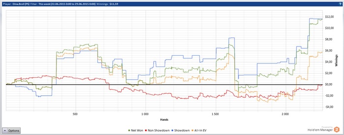 Решила сыграть чек-колл на флопе и чек-рейз на терне, опп довольно агрессивный, сыграла с ним уже больше 1к рук, статистика на него была. Сначала показалось, что хорошо сыграла, потом при разборе очень засомневалась.