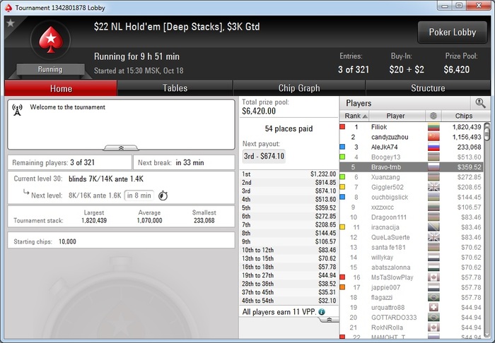 Ну если игрок не уровня топ, то я всегда готов играть постфлоп с любыми руками. Но тут же финалка, нужно учитывать исм. На момент раздачи у меня был стек ценой 750$. У коротышей по 450-500$ примерно. И уже после турнира у меня возник вопрос, стоило ли вообще играть раздачи? Тем более слабо плюсовые.