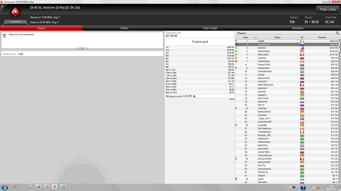 бля да я днище просто,опять ха наипростейшему слил,натсы всегда,плохо играл в ха так вроде ниче да и насыпали нормально,была еще предфиналка по 5 но там сначало повезло,потом не повезло и гг 16 месте А теперь там там тадам у нас есть победитель это пользователь под 32 номером и это у нас elenka,условия те же у тебя есть 48 часов чтобы написать здесь или в пм ник на пс куда я могу переслать деньги,если не отпишешешь у нас будет новый победитель