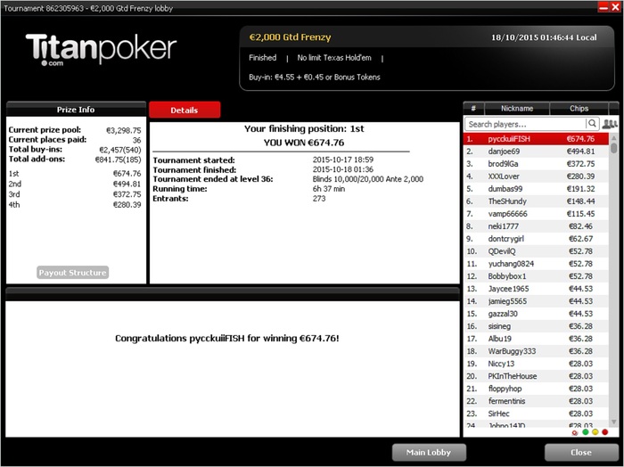 No Limit Holdem Tournament