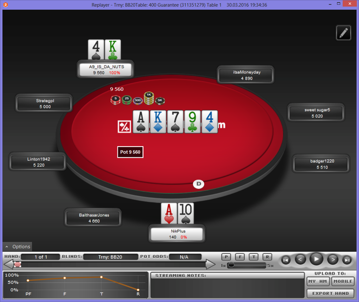В целом стадия пуш фолд сыграна в плюс, остальные раздачи без нарушений: