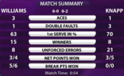 - Уильямс-Кнапп 6-0, 6-2. Тут тоже брал Кнапп - и тоже пропустил трансляцию )