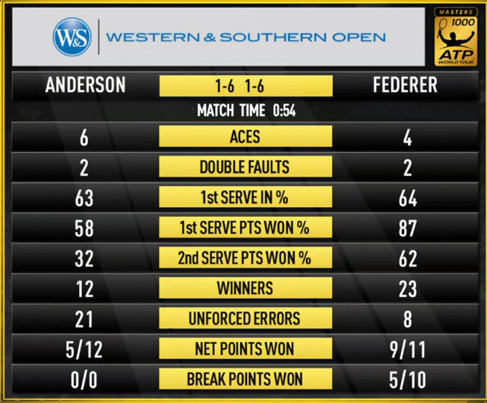 - Федерер-Андерсон 6-1, 6-1. В большой четверке на этом турнире (вместе с Джоковичем, Марреем и Вавринкой) только форма Роджера не вызывает никаких вопросов: