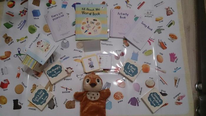Система позволяет познакомить ребенка с английским языком в игровой форме, для этого прилагается игрушка, которую одевают на руку и разговаривают с ребенком. Также множество небольших рассказов с очень красивым и красочным оформлением, карточки со словами, игровой коврик и записи детских песен. Обучение рассчитано для детей от 0 до 3 лет. Так что ждем, когда малыш сможет концентрировать свое внимание на предметах и внимательно слушать. Правда нужно будет еще самим подготовиться В целом мы были очень довольны качеством прилагаемого материала, я просто в восторге.