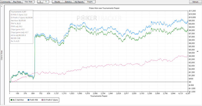 PokerStars - $5+$0.50|20/40 NL (2 max) - Holdem - 2 playersHand converted by PokerTracker 4SB: 190.65 BB (VPIP: 72.73, PFR: 45.45, 3Bet Preflop: 20.00, Hands: 12)