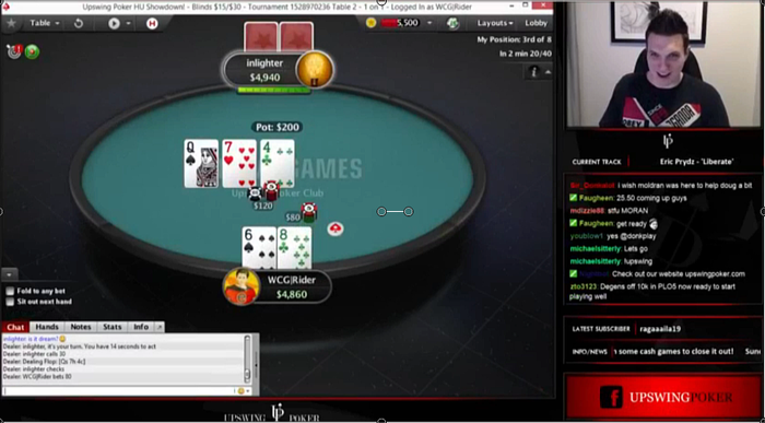 Вчера намба уан ХА организовал Home games - ХА турнирчик за 5.5$ с 5000 стартовыми и 3 мин блинами, первый уровень 30/15. Удалось пройти в 1\4 финала, где и пересекся со звездой, матье его, хедзапа. Сразу скажу, что опыт в таких дипстеках у меня ничтожный, поэтому играл как говно... хотя чего лукавить, против WCG иначе играть невозможно.