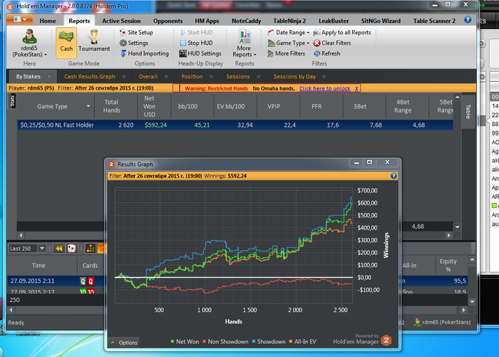 Axyevshiy_kolobok @ 25.9.2015 Сильно раздражаюсь на всяческие внешние факторы, очень хорошо шел в +100$ за 1к раздач, так блять пришли выебали мозг ушли, все я поплыл.