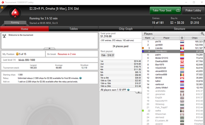 UTG+1: 98.58 BB (VPIP: 0.00, PFR: 0.00, 3Bet Preflop: 0.00, Hands: 5)