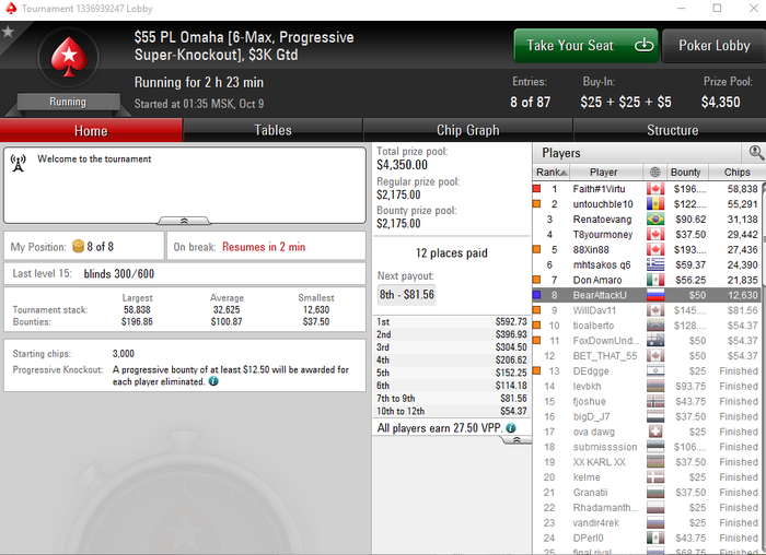 UTG: 53.27 BB (VPIP: 33.33, PFR: 20.83, 3Bet Preflop: 11.11, Hands: 24)