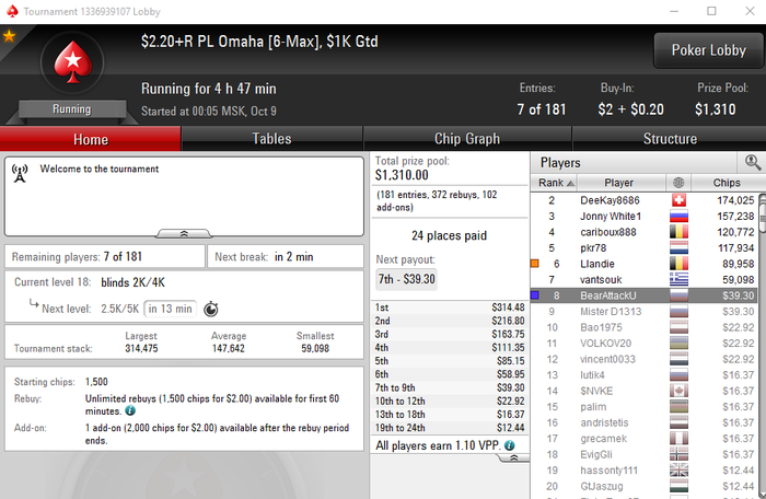 UTG: 116.52 BB (VPIP: 56.10, PFR: 4.88, 3Bet Preflop: 0.00, Hands: 42)