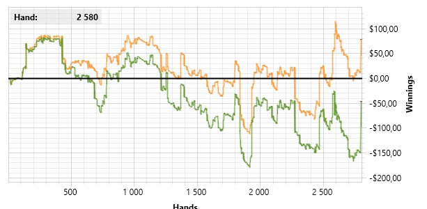 На сотке довольно сложно играть против некоторых регов и против агрофишей, особенно когда все мимо. Сложно играются раздачи с дровами в 3бет потах. надо видимо им уделить особое внимание и поразбирать)