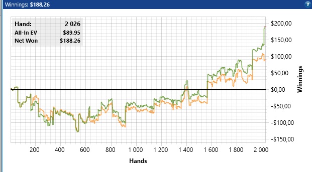 В этом месяце в руме проходили интересные акции, поэтому рейкбэком очень порадовали. Также несколько БИ МТТ просажено и пару снг выиграно) Что касается катки, то месяц был интересный и глядя на график можно понять почему;) были сессии,когда я наверно хотела бы сойти с ума от того, что происходило,если бы ев показывало еще и доезды и кулера , меня понять было бы еще проще. это именно тот случай,когда ев линия давала хоть какую-то надежду на то, что я не днище.. до сих пор выставляюсь даже с 85% в монетку, но при этом уже абсолютно спокойно. где-то там внизу графика случился момент,когда стало уже фиолетово сколько денег улетит в этом месяца, ведь решения-то правильные и от этого никуда не денешься)