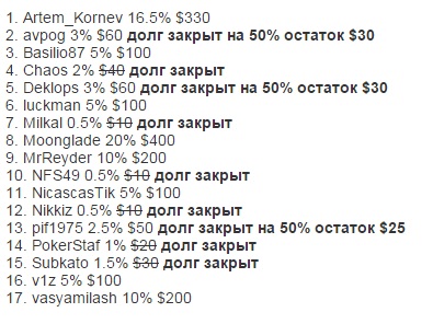 50% от дохода если он будет, после погашения всех долгов буду отдавать все равно.
