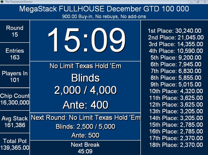 Спасибо, за оперативный чипкаунт. Рассадка потрясла. Называется сохраним интригу. К чиплидерам на каждом столе, посадили вторые стеки, через место третьи стеки, и т.д. С права от чипака соответственно самый короткий. Покер, это позиционная игра. Исходя из этого, я б хотел иметь, не первый стек, а третий. Парадокс. Хотелось, бы в жеребьевки, от клуба, больше случайного элемента, а не уравнения шансов. (у нас, же не коммунизм). Надеюсь, мой стол расформируют, как можно быстрей. Фотки, такие же как жеребьевка