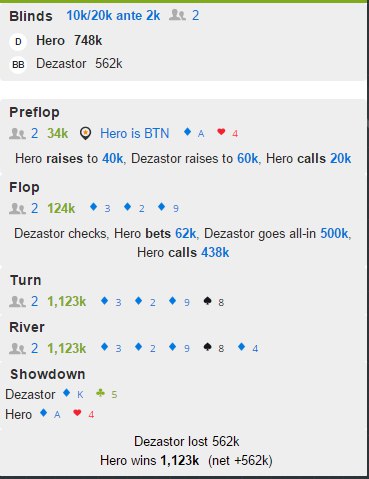 Я таких на даже на нл 2 редко встречаю. Мне кажется его умысел пидорский в том и заключался - ех мля была не была а ебану ка я рейз по терну K:x так как у него по флопу скорее всего овер пара была а тут типа изибразим К и он фолд - доехало сученышу четко