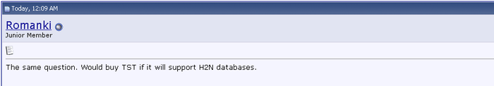 Неплохо было бы сконектить ваши базы с TST ? Точнее они конектятся, только пользы от этого нет. После сканирования TST базы, созданной h2n информации нет никакой - ни про хобби игроков ни про регуляров !
