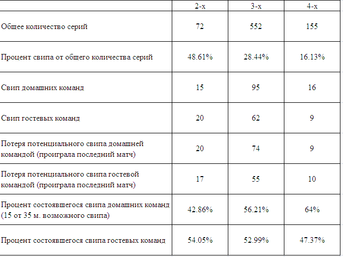В сезоне МЛБ 2016 было сыграно 779 серий. Интересна статистика, когда команда могла сделать свип (3-0), но проиграла 1 матч: - у дом.команд таких матчей – 74; - у гостевых – 55. При счете 2-0 в пользу хозяев плюсово ставить на свипы (56,21%), гостей (52,99%).
