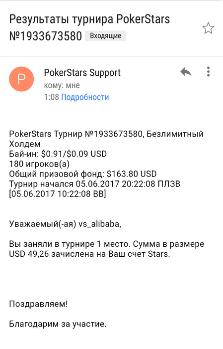 Хелпер автоматом закрыл стол, не успел заскринить лобби) ну думаю скрин почты тоже считается