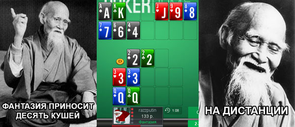 Я взломал автомат. Сегодня не пил, но не выспался. Поиграл бы подольше, но... Разложил половину фантазии и только потом увидел фул, практически сразу после этого прозевал у оппа пару важных аутов. Решил, что нужно заканчивать на сегодня. Итого за пятый день: