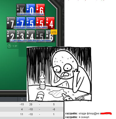 он вообще какой то странный, со мной один раз играл минут 20 потом только по одной раздаче он вообще ни с кем больше 5 минут походу не катает, хитэндраннер какой то