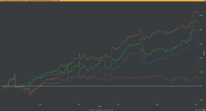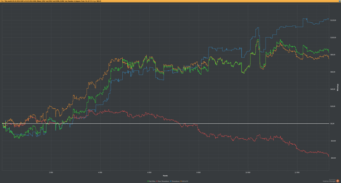 Наигрыш дистанции таким образом очень страдает, но нужно чем то жертвовать. За 1.5ч идет 1кк рук. Постараюсь каждый день держать в районе 5к рук.