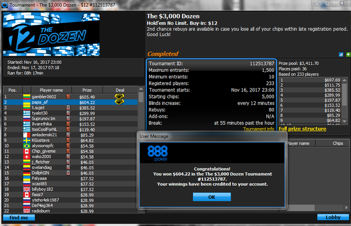 Вылетел от фиша, выставившись на терне со стритом+натсовым флеш-дро. Ривером фулл закрылся.