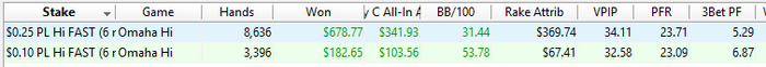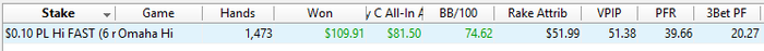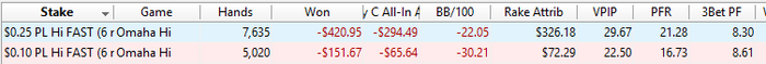 PokerStars - $0.25 PL Hi FAST (6 max) - Omaha Hi - 6 playersHand converted by PokerTracker 4BTN: 259.56 BB (VPIP: 61.54, PFR: 21.98, 3Bet Preflop: 5.38, Hands: 275)