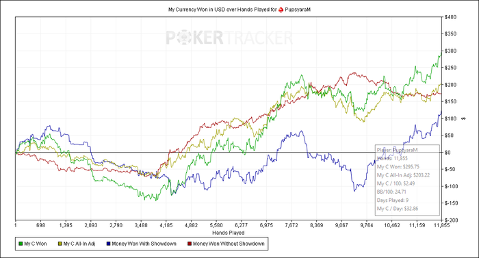 SB: 130.76 BB (VPIP: 44.44, PFR: 11.11, 3Bet Preflop: 0.00, Hands: 9)