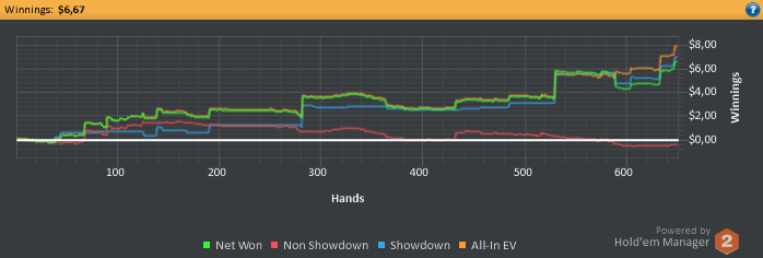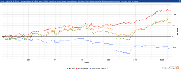 Свою последнюю сессию я шел +6.5 БИ. однако сильно подустав начал залезать в ебанутые споты и выставляться на АК против неизвестного на префлопе.