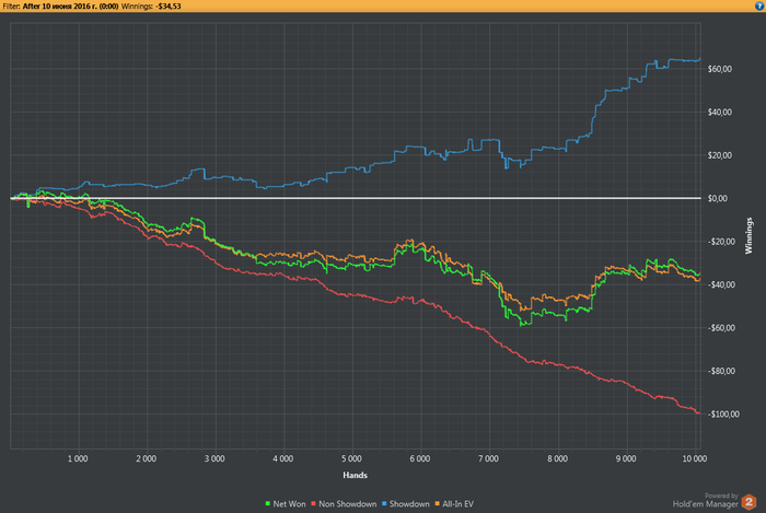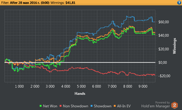 В июне планирую сыграть как минимум столько же по кол-ву рук. И хотелось бы конечно сыграть с лучшим винрейтом это все. Возможно во второй половине месяца предприму попытку перехода на Nl10, с помощью бекеров.