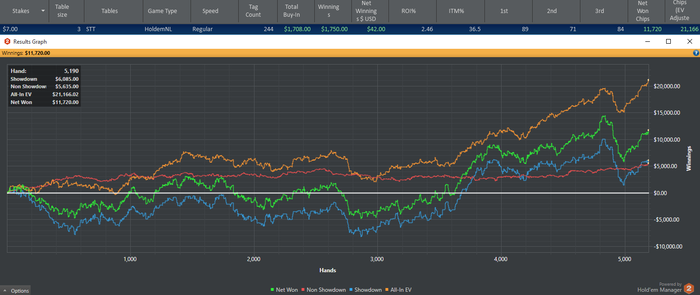Вообще откатал совсем мало турниров. т.к. болел. Дела на лимите идут неопределенно. По ев всё хорошо а по факту рои 2,5% Но я так погляжу у всех на форуме переход на новый лимит начинается с нехилых недоборов. Надо навёрстывать дистанцию. Ещё заметил, что как-то много проигрываю в 3-максе, хотя раньше с этим проблем небыло. Может дела в переездах, а может в игре, пока сложно сказать. Зато в хедзапе на удивление лучше себя ощущаю, чем раньше.