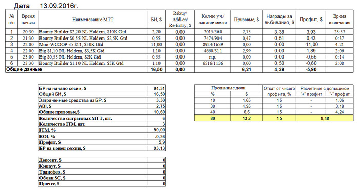 Отчет за 13.09.2016г.: