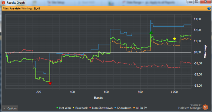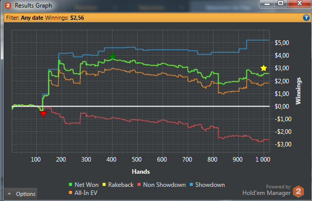 В кеш сегодня не было желания играть. Отмазал вчерашний минус в статусном турнире. Аут QJs против с KTo. На борд ни чего не пришло и оп. по К хай забрал мой стэк. Играл без статов на телефоне. В принципе сыграл не плохо, немного не повезло.