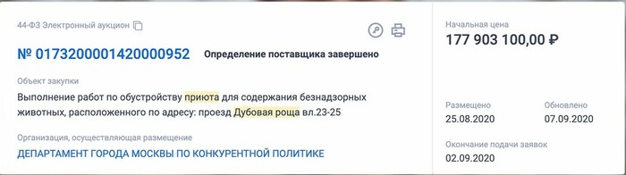К слову, производитель данного "корма", который вы не найдёте ни в одном магазине, ООО "МясоПродукт" — единственный, кто участвовал в тендере. Никто больше за предложенную цену участвовать не стал. Интересно, а вот это вообще ЗАКОННО