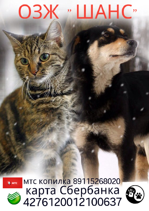 ДРУЗЬЯ! мы в отчаянии((( Ситуация снова критическая!Животных в приюте не убавляется а наоборот...Котята и кошки сидят друг на друге.Срочно нужна хотя бы одна клетка, стоимость одной порядка 1500 рублей. Не чем кормить животных, запасы иссякли и сегодня миски были наполнены последней едой((( Нужен сухой корм,крупы,консервы и все что пригодно для еды.На передержке 25 взрослых собак и щенков, более 30 кошек и котят, многие из них больны им требуется медицинская помощь, долг в клинике больше 7000 рублей! Без Вас нам не справится,помогите выбраться из трудной ситуации.Любую помощь можно передать лично. 8-911-526-80-20, 8-900-559-23-66, 8-953-511-86-92, Можно помочь финансово , любую сумму положить на МТС-копилку 8-911-526-80-20 или перевести на СберКарту 4276 1200 1210 0637 (зарегистрированную на Лебедеву Ольгу Владимировну) также опустить в ящик-копилку в м-не МАСТЕР в центре и "Ваша Дача" в ЛДК в Малютинском! Дайте ШАНС выжить нам в трудной ситуации!!!!!!