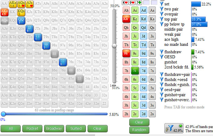 Не все сеты он тут будет рейзить, так как ему нет смысла выбивать весь диапазон цбета хиро, тоже думаю понятное дело. Даже если убрать сеты, то есть он их будет рейзить в 100%, то все равно спектр колла будет иметь порядка 53% продолжения.