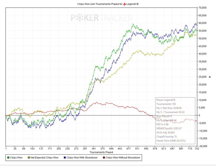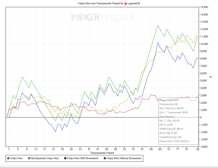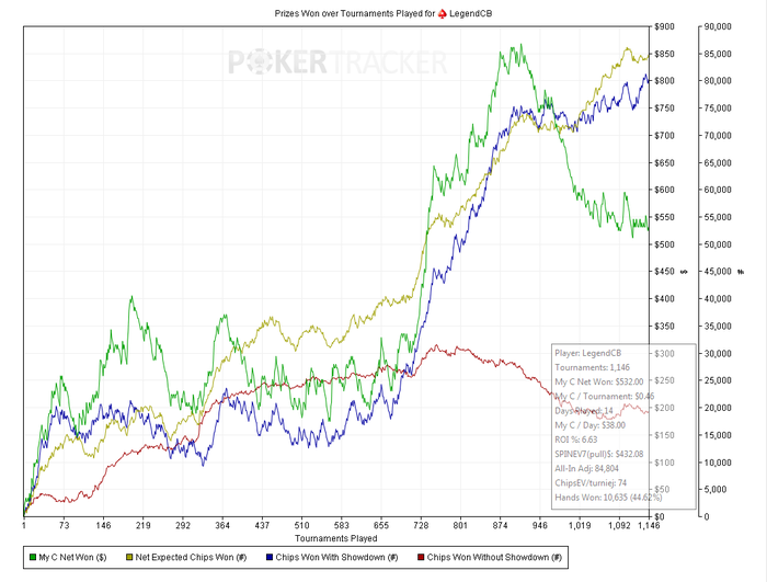 Из за этого чип ев упало с 82 до 71 очень зажался. Стал меньше блефовать из за этого красная пошла по плавать на дно. Но обещаю себе что за выходные приду в форму и в понедельник поставлю всё на свои места, ведь до 15-ек осталось менее 400 турниров.
