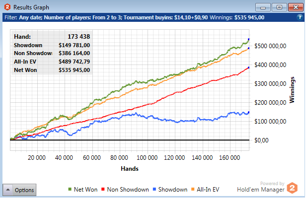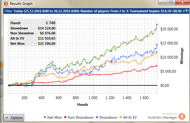 Poker Stars, $28.20 Buy-in (10/20 blinds) No Limit Hold'em Tournament, 2 Players
