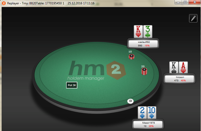 Мои мысли сначала были просто кольнуть(вроде самое очевидное),но потом я начал думать,что буду делать дальше,на ривере....вполне вероятный плотный бет или пуш-выбрасывать? Тогда если мы очкуем,то выкидывать нужно уже на тёрне,и не рассчитывать на призрачное усиление.