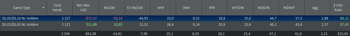 5. 14:40-15:40=60мин | 527 руки | ...-23,05.. | -49,91 | 6 с 10 | Comment: Доволен как сыграл по сути 1 переезд одна монетка в Мою пользу одно монстр дро против супер фиша, и один по Моему мнению хороший кол и все проиграл, не складываеться ппц, но играю нормально доволен. Texника: без грубых, но есть пограничные.; Rating: 5 с 10 . Психология: норм; Rating: 7 с 10 .