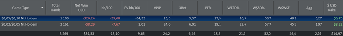 Отыграл 6 мини сессий на 3 столах NL5 и 3 столах NL10 6MAX: