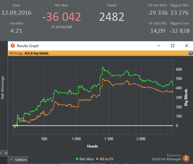 По ев была большая недодача, но это в принципе и так ощущалось, когда практически не выигрываешь оллины. На следующий день начал играть еще одну сессию и там уже было настолько все