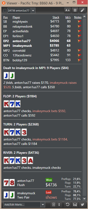 В целом по месяцу играл существенно меньше обычного, даже до 500 турниров не дотянул. Было бы оправданием, если бы игру заменил работой над игрой и устранением ликов, но ....увы.