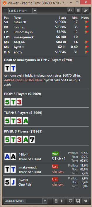 Заказал тут у одного умельца, лейауты на все румы одинаковые, чтобы глаза не уставали, а ток концу затяжной сессии после радуги, болят глаза. В итоге лейауты вышли гуд, выбрал тему на старзах Mercury и сарты с рубашкой розовой и 4 -х цветную колоду, не яркую, а та которая более спокойных тонов, как нибудь заскриню выложу рабочий стол сюда. Вроде понравилось и все нормально работает. Делали лейты для Party/888/Titan.