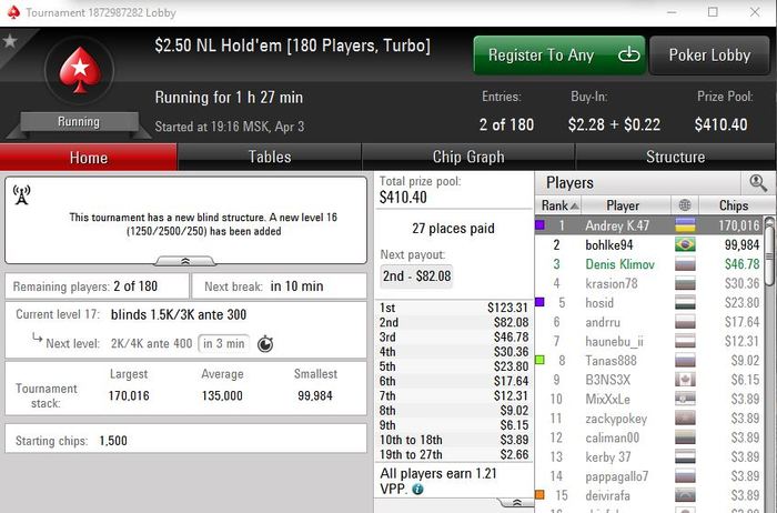 SB: $6.18 - VPIP: 25, PFR: 15, 3B: 2, AF: 1,6, Hands: 261